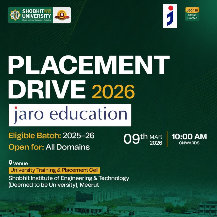 Shobhit University believes in strategic growth as envisaged in our mission and vision, to impart quality education through vertical and horizontal integration. Shobhit University is a leading Indian university that offers undergraduate, professional, and graduate students a unique academic environment.