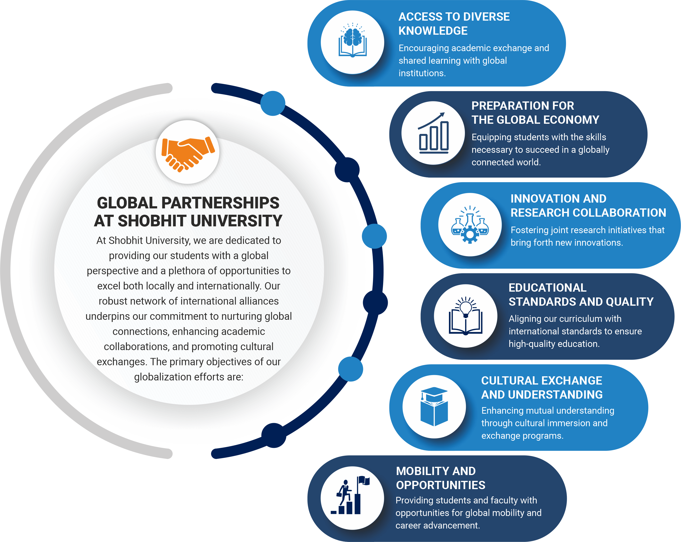 At Shobhit University, we believe in building bridges—connecting disciplines, cultures, and continents. Embark on your educational journey with us, where your learning experiences are as global as your aspirations.